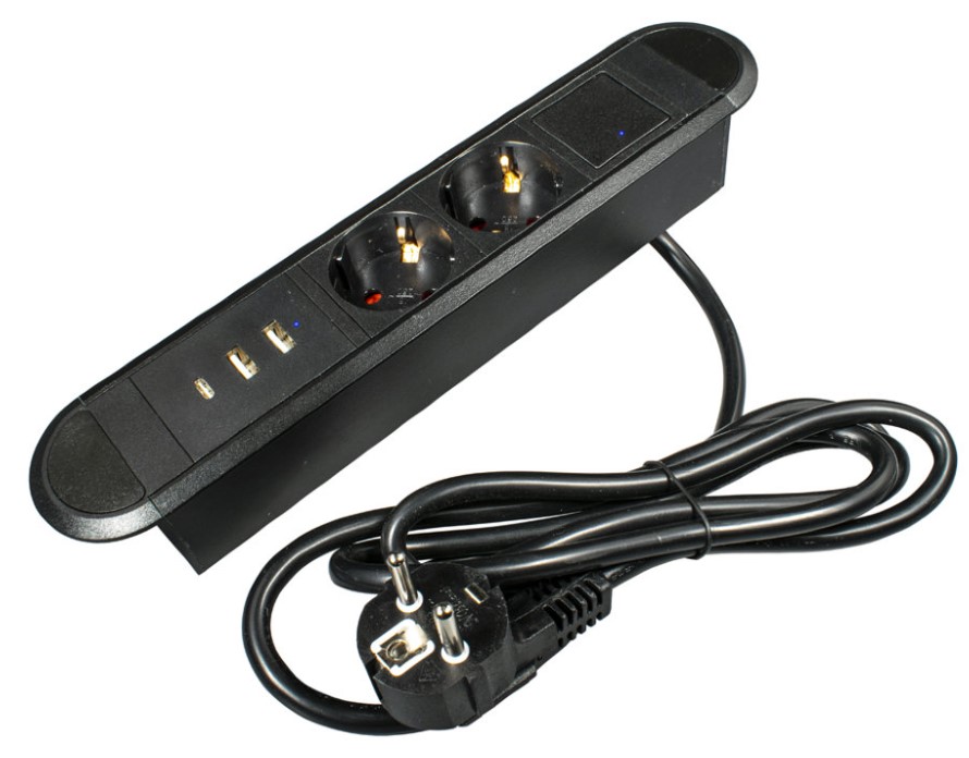 10А, 2хUSB A+USB C 5В, 3А, с нажимным выключателем, 272х54х45мм, кабель 1,8м с вилкой EU