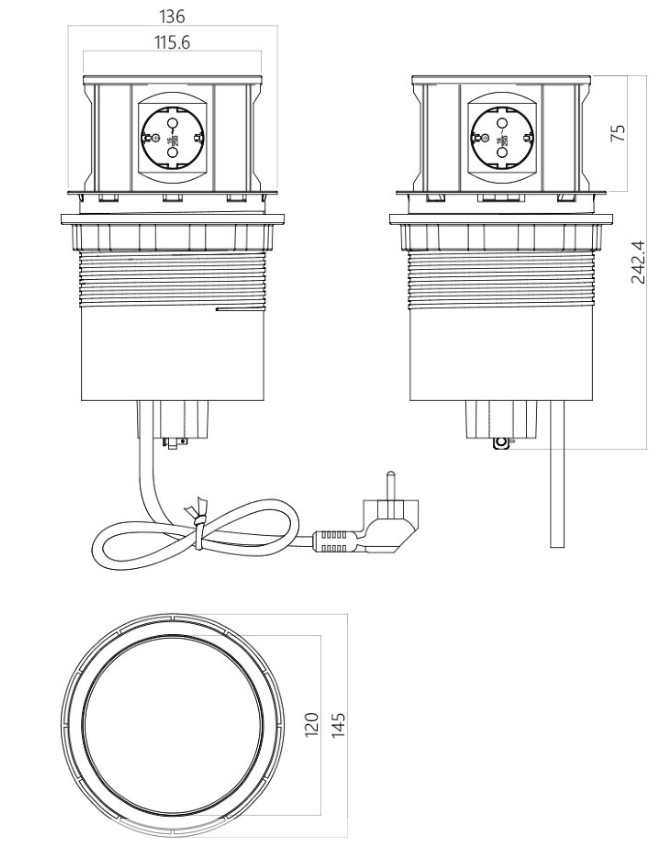Размеры, d x высота 145 × 243 мм