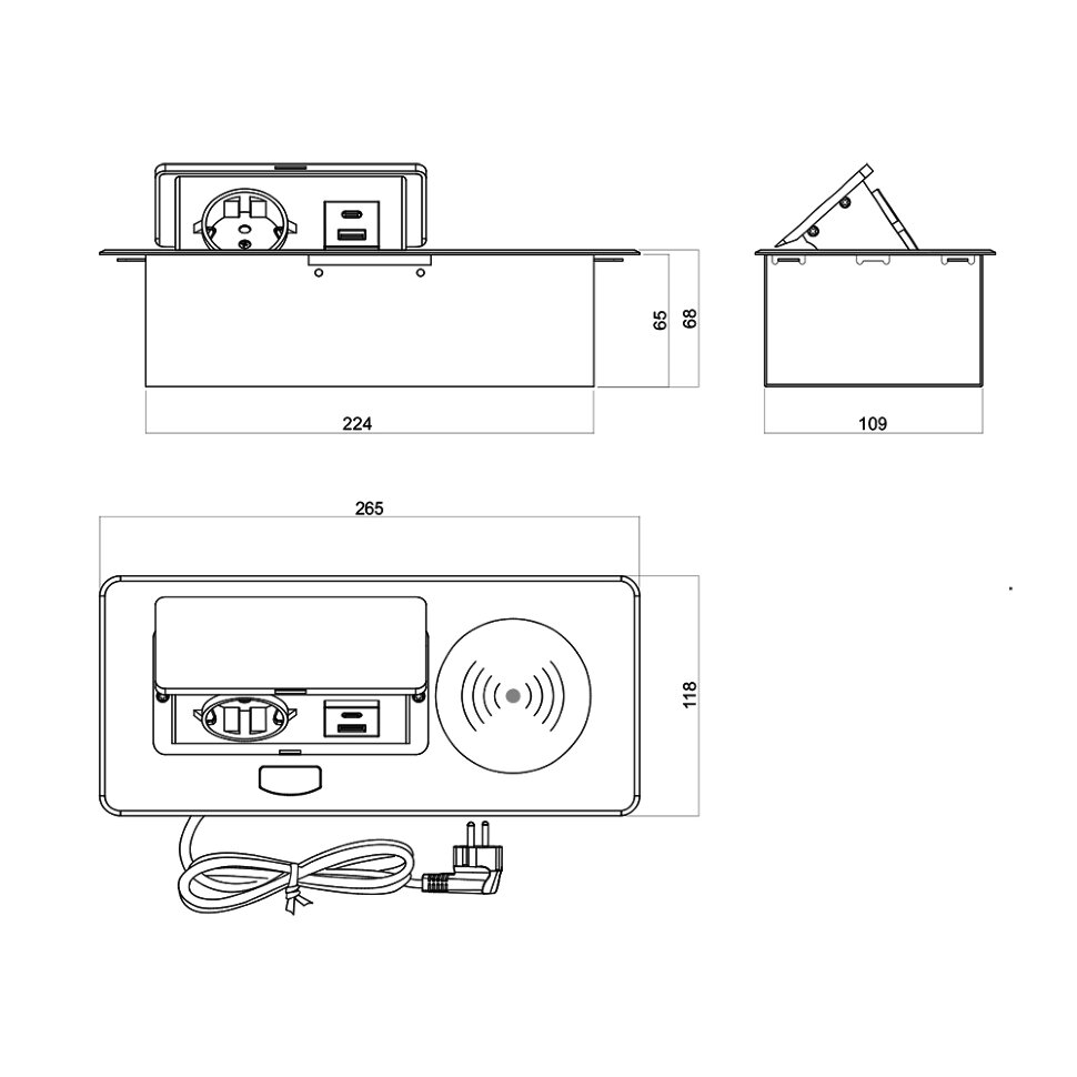 1шт сетевую розетку с заземлением (SCHUKO), устройство беспроводной зарядки, 1шт порт