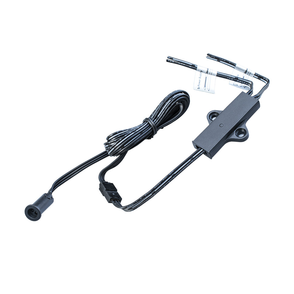 Датчики имеют цилиндрическую форму и внешний диаметр D=10мм, врезное отверстие для установки датчика Dотв = 8мм, но возможен и накладной вариант установки, в комплект выключателя входит аккуратный держатель. Минимальный диаметр датчика допускает установку в полку толщиной от 10 мм и более. Провод от датчика до выключателя L=1м с коннектором. Блок управления 33*50*8,3мм с проводами для питания и нагрузки 2*20AWG L=10см, имеет облуженные концы.